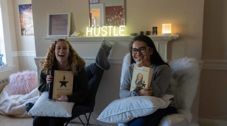 More than 800 of our students live on campus. The smallest dorm has four students; the largest has 44. Some dorms are quaint cottages and others are handsome brick buildings: all of them have faculty house counselors and student mentors—essential sources of snacks and comfy chairs, advice and guidance. Every dorm generates its own culture, its own flurry of social events, shared meals, improvised traditions, random outings, and overall spirit. All of them feel, in ways large and small, like home.