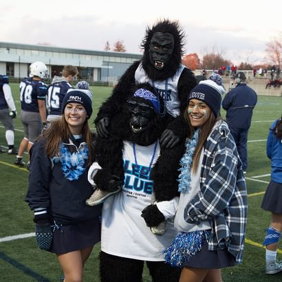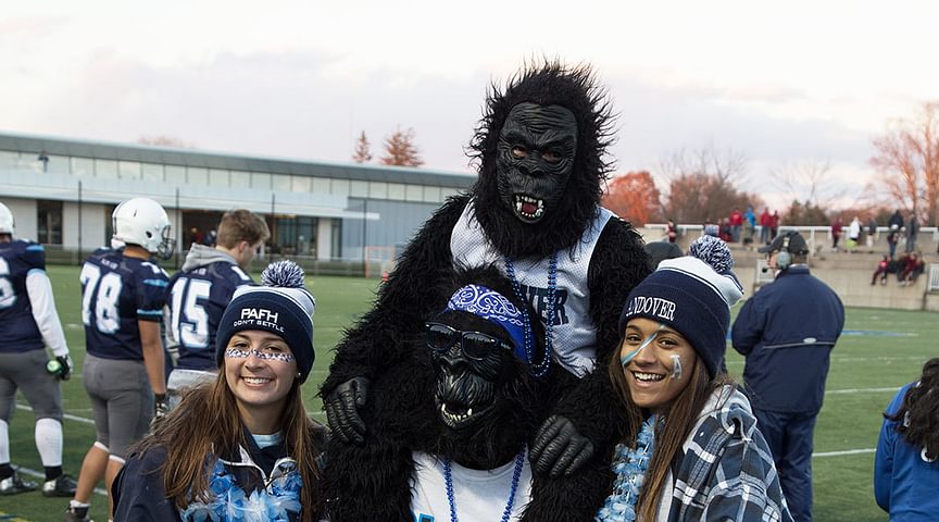 Leading up to the rivalry weekend, Andover students showed their Big Blue Spirit with themes for each day of the week. Highlights included cluster color wars, geek day, and eighties disco. On Friday night at the pep rally, students hyped up the crowd with fun dances and routines led by the Blue Key Heads. As a final surprise, the football team and crowd honored Coach Modeste with a fun shirt design and rally cry for his final game: One Mo Game.