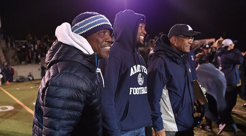 141st meeting of Andover and Exeter provides thrills, chills, and a final victoryOn a rainy, cold, and gusty Saturday at Phillips Academy, Big Blue football, field hockey, and volleyball claimed victory over Exeter, while both boys’ and girls’ soccer games ended in ties. The Andover faithful, undeterred by falling temperatures, packed stadiums and sidelines to cheer on our athletes and witness outstanding athletic competitions. The day marked Head Football Coach Leon Modeste’s final A-E gridiron matchup; he is set to retire as athletic director at the end of the academic year.