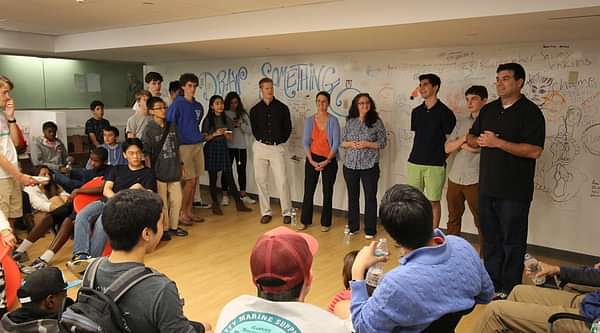 On Sept. 15, Michael Barker, Director of Academy Research, Information and Library Services, led a discussion about the creation of the OWHL Makerspace to a crowd of about 40 people in Pearson C, as part of the Tang Institute’s Lunch & Discussion Series. His talk focused on the library team’s progress in designing and developing a new Makerspace in the Oliver Wendell Holmes Library (OWHL), which is now open to the Andover community and features a 3-D printer, a sewing machine, and laser and vinyl cutters. The goal was to work with the community to create a lean, flexible, and informal space that brings together people of different backgrounds and skill sets to act upon their ideas together.