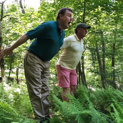 On Sunday of Reunion weekend, Warren Patterson, Gary Levine, and I—all Class of 1978 and lovers of Andover’s ski team—searched poison ivy-infested Holt Hill looking for the remains of the old alpine ski jump. No longer used by Andover, the location was made famous (infamous?) by the 1970s “Mother Phillips” photo of bodies artfully positioned on the landing.