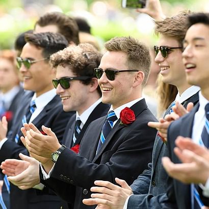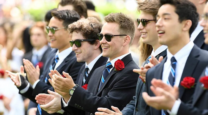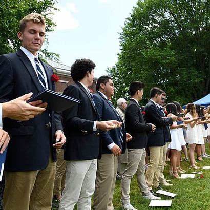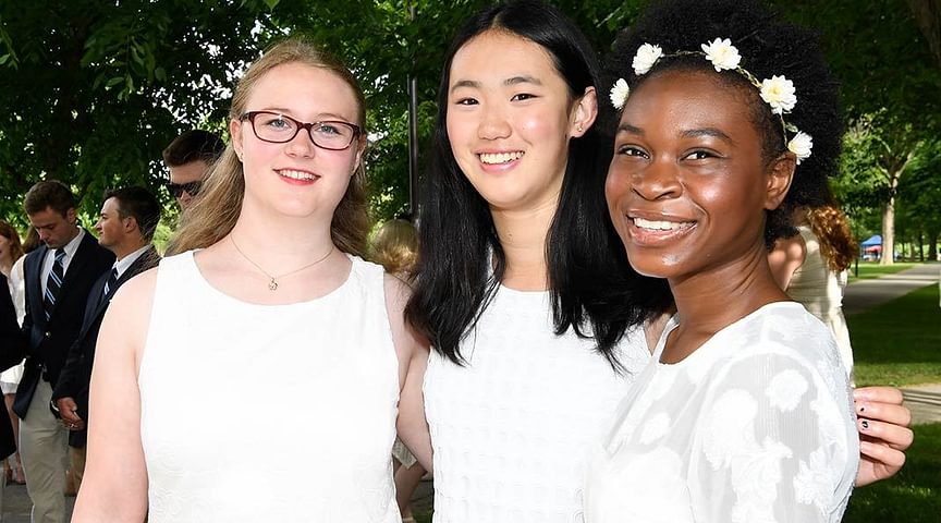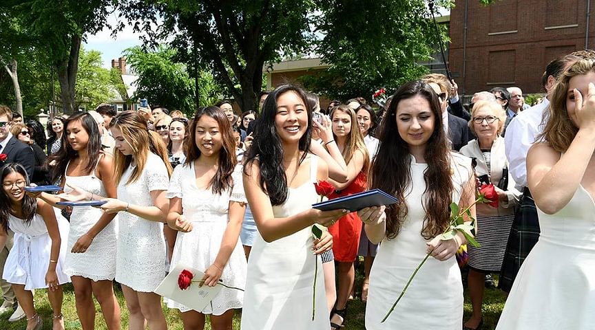 Some 3,000 guests attended the exercises, which took place in front of Samuel Phillips Hall. The traditional procession of trustees, faculty emeriti, faculty and seniors was led by the stirring sounds of Clan MacPherson Pipes and Drums. The jubilant seniors each carried a red Abbot rose.