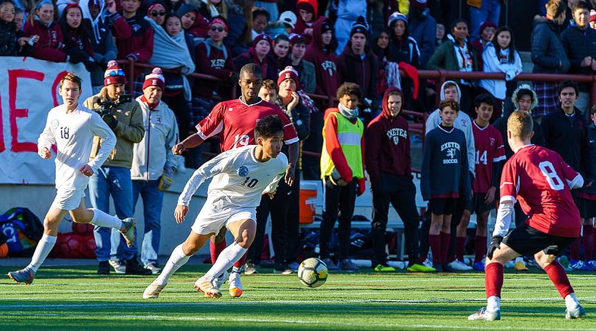 The Andover varsity soccer, volleyball, field hockey, and football teams traveled to Exeter to renew the country’s oldest prep school rivalry this past weekend. Accompanied by a large Big Blue fan base that outnumbered Big Red supporters in the stands, Andover secured victories in Football (14-13), girls’ soccer (1-0), and field hockey (3-0); boys’ soccer tied (1-1) while girls’ volleyball lost 0-3.