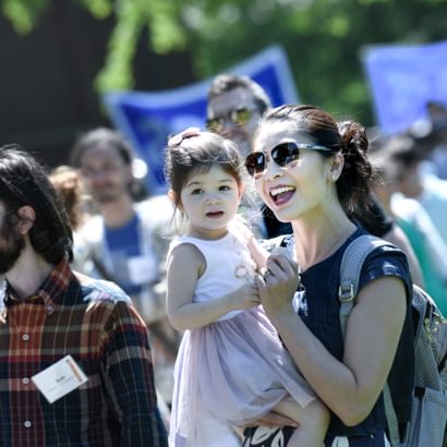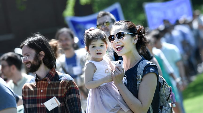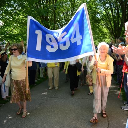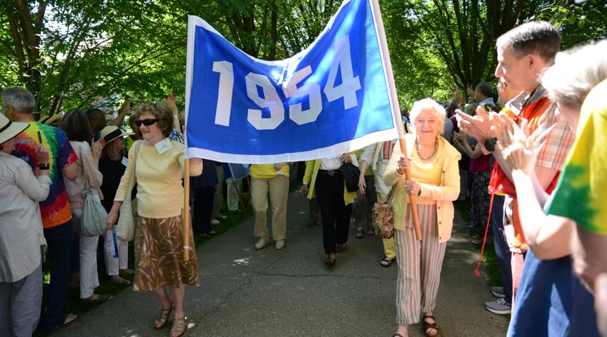 The alumni parade is a tradition of universal enthusiasm that never gets old. From the first strains of the Clan MacPherson Pipes and Drums band to the procession of celebrating alumni, this is Big Blue Pride in full swing.