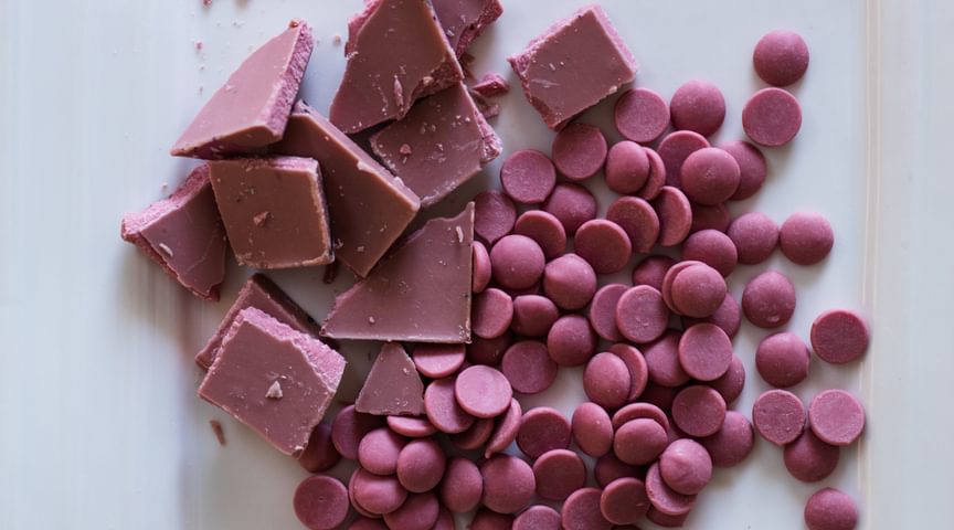 Chef Priscilla Martell ’74 and food industry writer Louise Kramer ’75 provided samples and a guided tasting of chocolate from milk to ruby (pictured) and dark.