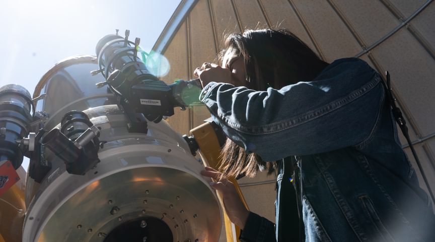 Clear skies enabled alumni to head down to the Gelb Observatory and view the sun from the science center's telescope.