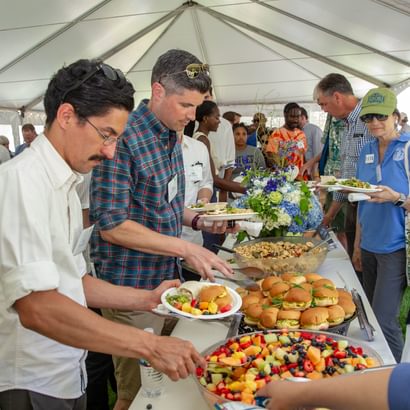 Alumni from 1944 to 2014 connected during Saturday's picnic lunch.