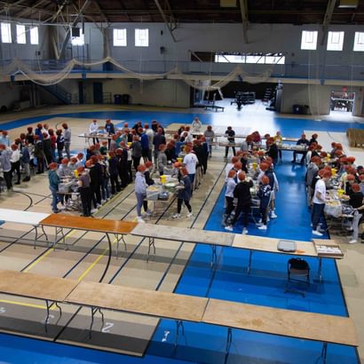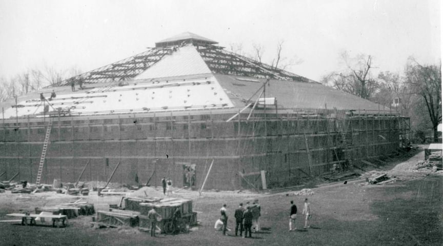 The Cage was designed in 1922-23 by well-known architect Guy Lowell of Boston. The building served as a home for indoor track and field, wrestling, student clubs, intramurals, and community events.