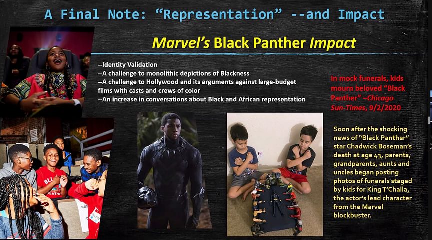 Instructor in and chair of English Stephanie Curci said: “I think that if one of our goals is critical consciousness (and that was a helpful reframe because it talks not just about the understanding of systems but also about the psychological health of the student), then using film and social media as a text feels important. It changes how I think about their use. And because I’m doing Watchmen and Black Panther next term, I have to figure out a way to include some of those visual texts.”