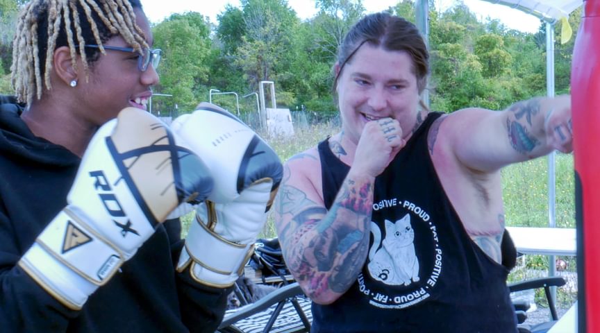 The couple and their son recently moved to a 40-acre property in Brockport, New York. There, among the deer, toads, hawks, and hummingbirds, McSpadden hopes to build a new outdoor space for training and community events. McSpadden recognizes this is a growing field, and they are still learning. Currently enrolled in a master’s program for mental health counseling, McSpadden is also a 2022–2023 fellow of the National Board of Certified Counselors and is engaged in research on harm reduction–focused therapy for the LGBTQIA+ community.