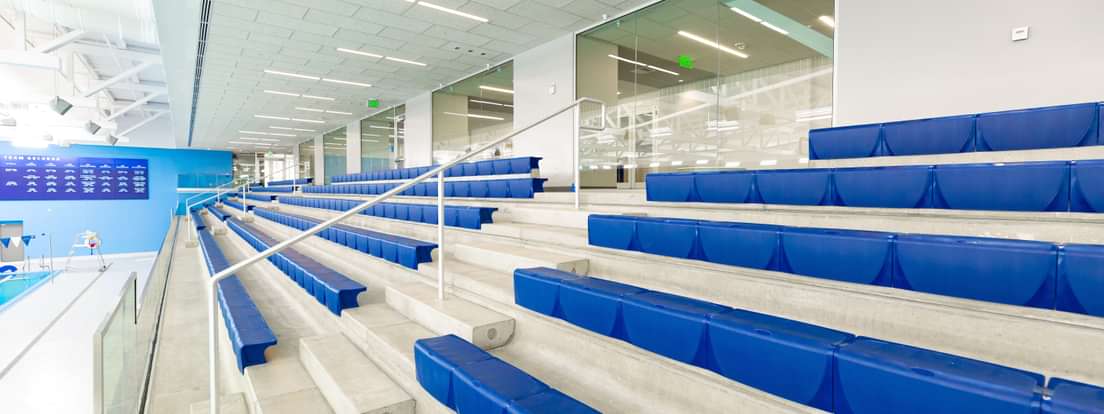 Friends, parents, and alumni can cheer on Big Blue swimmers in this bright, open concourse overlooking the length of the pool from the second floor. The viewing area was made possible by the Vantzelfde Family Foundation (Nicholas ’97). It’s the best—and driest—vantage point for up to 468 of Andover’s most passionate fans to catch split-second relay finishes, graceful dives, and thrilling water polo matches taking place below.