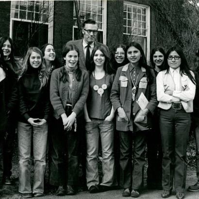 Recognizing the need to maintain and amplify Abbot’s values into the future, a group of Abbot trustees, including Myndie Nutting ’40, Beverly Floe ’41, Mel Chapin ’36, P’59, GP’90, ’94, ’10, and Phil Allen ’29, P’52, ’53, GP’79, made a bold move in 1973 by taking $1 million out of Abbot’s endowment to form the Abbot Academy Association, now known as the Abbot Academy Fund (AAF). The idea was to have Abbot Academy alive and well as a funding agent within the new institution.