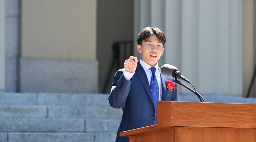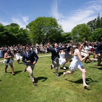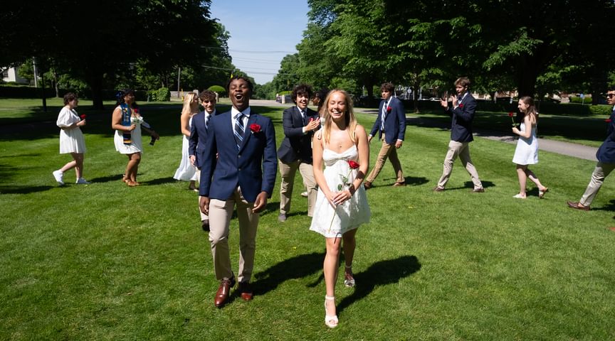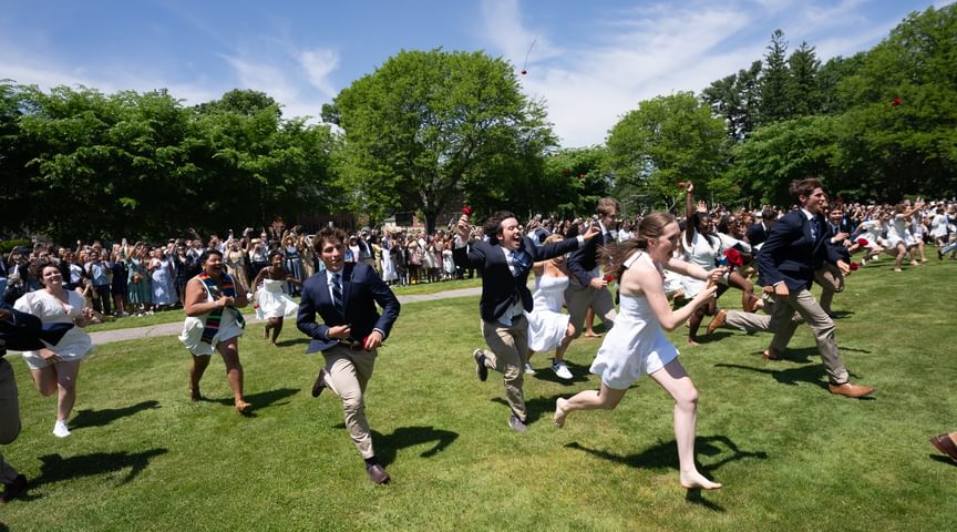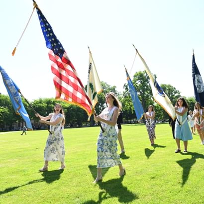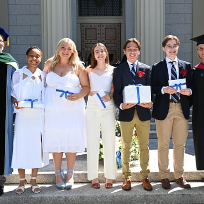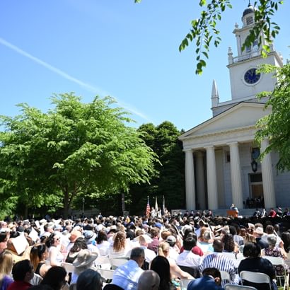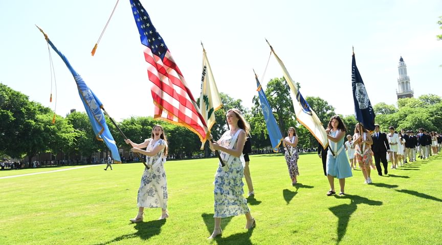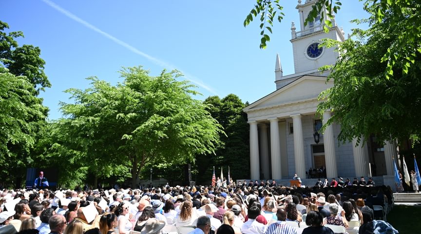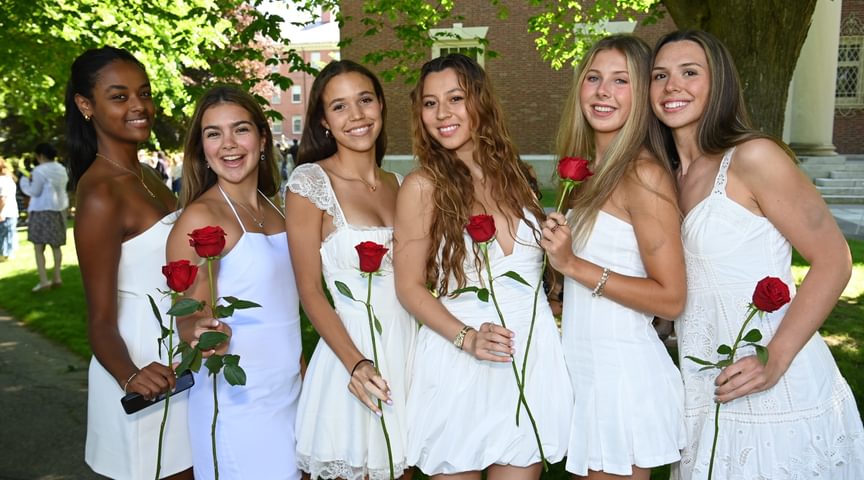 Some 3,000 guests attended the exercises, which took place in front of Samuel Phillips Hall on the Richard T. Greener Quadrangle. The traditional procession of trustees, faculty emeriti, faculty, and seniors along the Chandler-Wormly Vista was led by the stirring sounds of Clan MacPherson Pipes and Drums. Many jubilant seniors carried a red rose in honor of Abbot Academy.