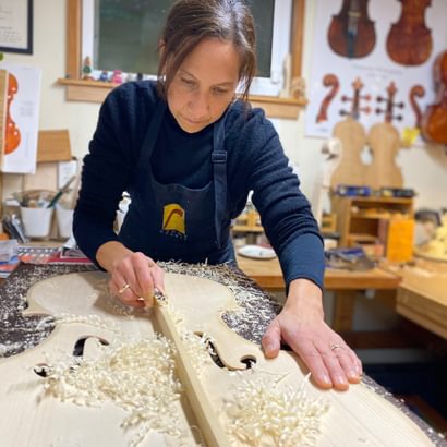 A: I apprenticed in Seattle for a few years and then enrolled at the Chicago School of Violin Making in 1998. We each built three violins, a viola, and a cello and learned varnish, restoration, and repair. We also studied and played old master instruments and learned precisely why they sound so good.